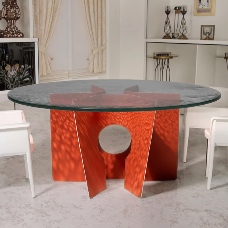 The base is designed to complement the tabletop’s drama without overshadowing it. Choose from a sleek, polished metal base (brushed brass or matte black) with clean lines that let the texture take center stage, or a solid wood base (matching the tabletop) with a subtle curve that adds softness. Either option is engineered for stability: even with a large tabletop and guests leaning in to pass dishes, the base stays sturdy, no wobbling or shifting. The low-profile design keeps the focus on the textured surface while ensuring plenty of legroom for comfortable seating.